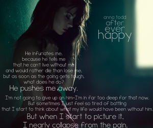 As I read the previous books, I kept saying to myself, “This girl might love Hardin too much.” She regularly lost herself around him, not that she really knew herself to begin with. And there was something in the way the author built the fabric of this plot. I could see the threads forming together, thickening like rope in this final book.